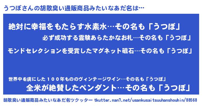 | ヒーロー風カッコイイあだ名 | 『天空の使者うつぼ』『ネオウツボ』 |
