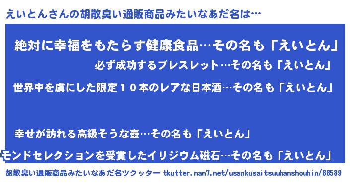 | 意味不明あだ名 | 『住所不定無職えいとん(43歳)』 |
