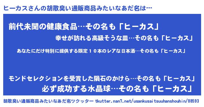 | 意味不明あだ名 | 『住所不定無職ヒーカス(62歳)』 |