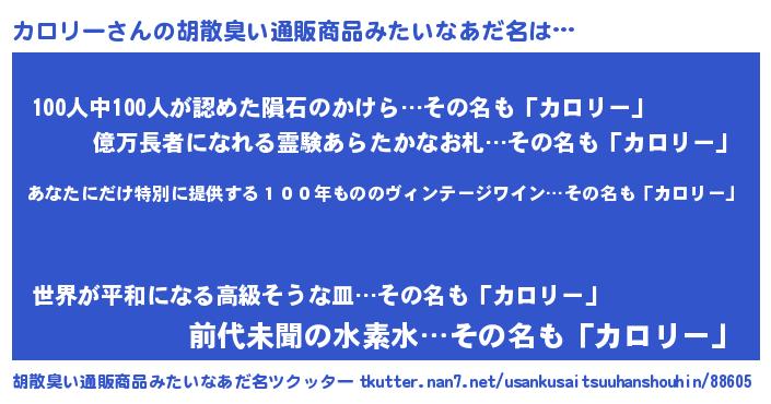 | 欧米人風あだ名 | 『ダレノガレカロリー』 |