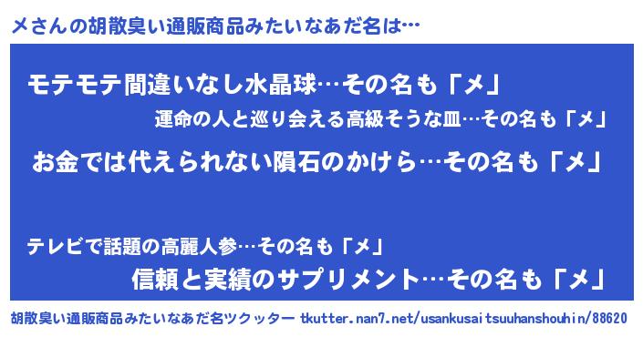 | ヘコむあだ名 | 『メもー』『メお』『酢こんぶ』 |