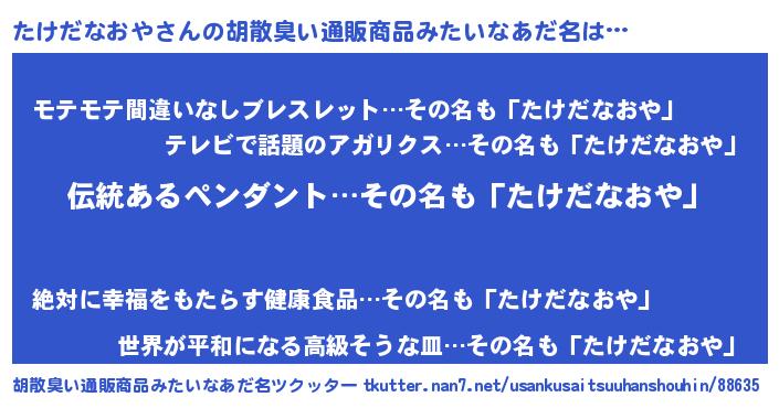 | ヘコむあだ名 | 『たけぷりん』『たけにー』 |