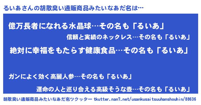 | ヘコむあだ名 | 『るいあ(笑)』『るいもー』 |