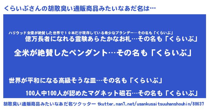 | 男性向けラノベタイトル風あだ名 | 『くらいぶの嫁は女の子じゃないと思った?』 |
