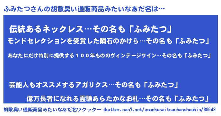 | 意味不明あだ名 | 『住所不定無職ふみたつ(10歳)』 |
