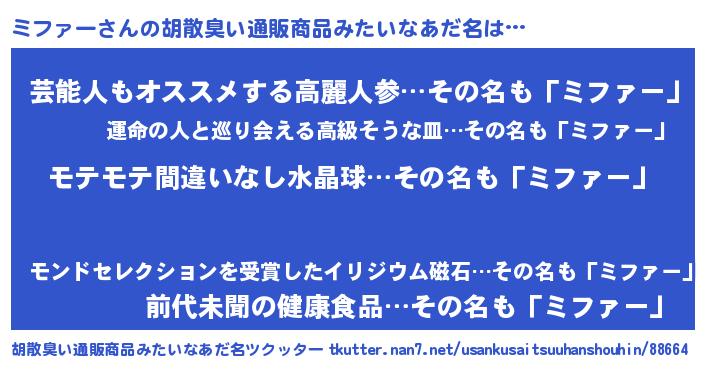 | ヘコむあだ名 | 『ミフにゅー』『ミファー(笑)』 |