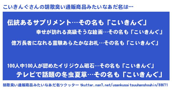 | 意味不明あだ名 | 『ペロリンこいきんぐ』『自称こいきんぐ』 |