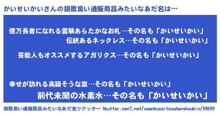 | 意味不明あだ名 | 『自称かいせいかい』 |
