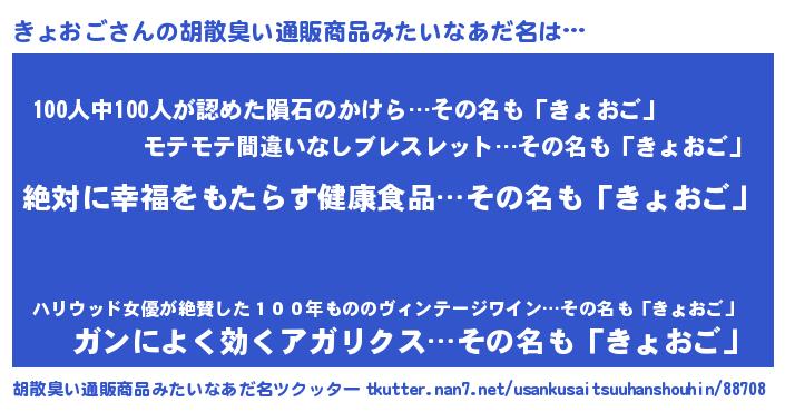 | ヘコむあだ名 | 『きょおご(爆)』『きょふぇ~』 |