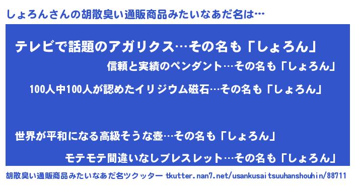 | 肩書あだ名 | 『しょろん助手』『しょろん閣下』 |
