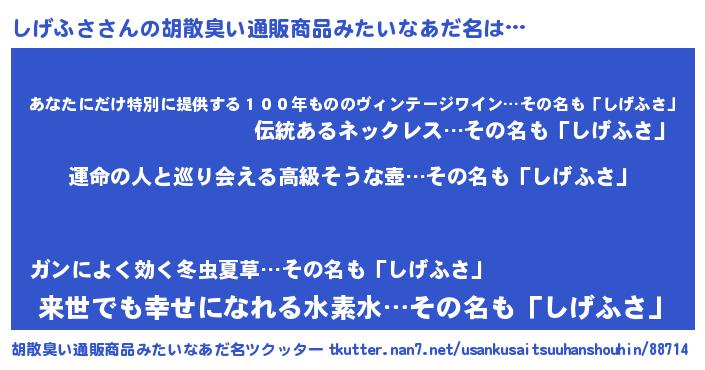 | 意味不明あだ名 | 『しげふさフォーエバー』 |