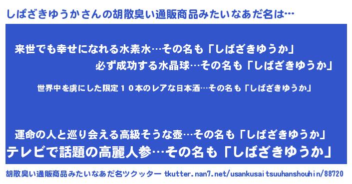 | ヒーロー風カッコイイあだ名 | 『仮面シバダー』『ネオシバザキユウカ』 |