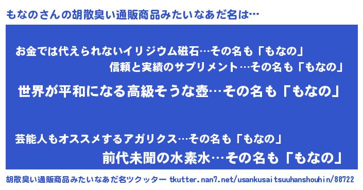 もなのさんの胡散臭い通販商品みたいなあだ名をツクッター!