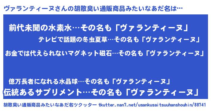 | ヘコむあだ名 | 『ヴァランティーヌ(笑)』『ヴァっちょ』 |