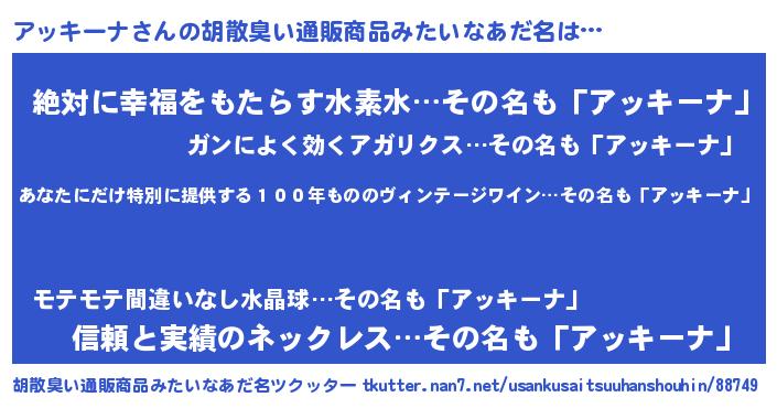| 意味不明あだ名 | 『ニラ科アッキーナ属』『自称アッキーナ』 |