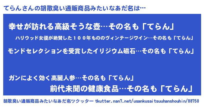 | ヘコむあだ名 | 『酢こんぶ』『てらん(苦笑)』 |