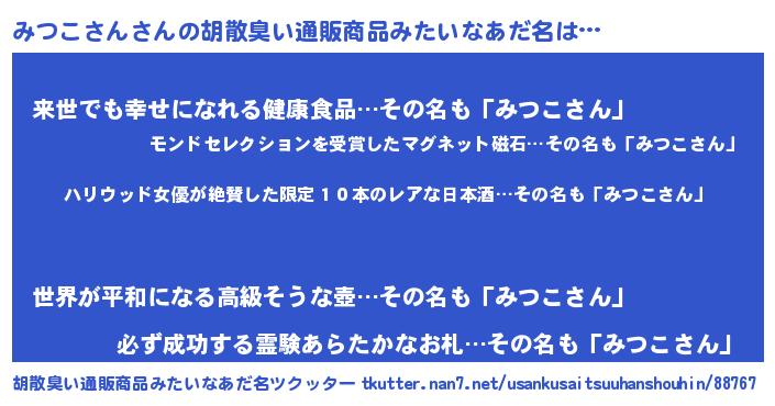 | 男性向けラノベタイトル風あだ名 | 『魔弾の王とみつこさん』 |