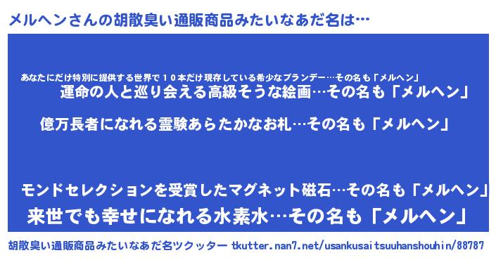| 恥ずかしいあだ名 | 『プリティーメルヘン』『メルちん』 |