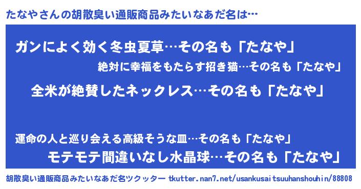 | 意味不明あだ名 | 『とにかく怪しいたなや』『自称たなや』 |