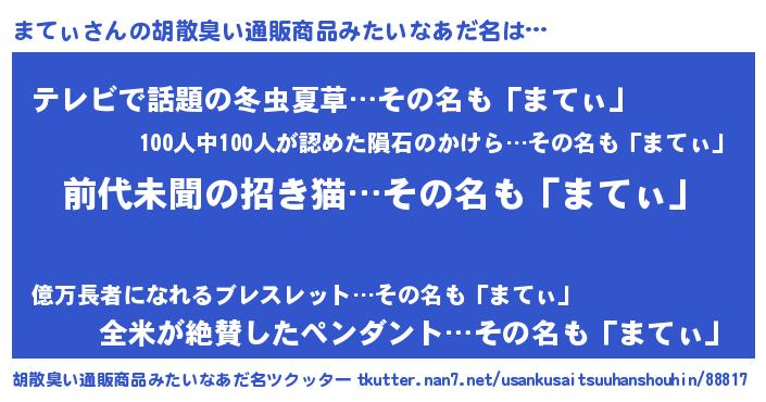 | ヘコむあだ名 | 『まてぃ(小並感)』『まてっちょ』 |