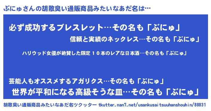 | 意味不明あだ名 | 『住所不定無職ぶにゅ(40歳)』 |