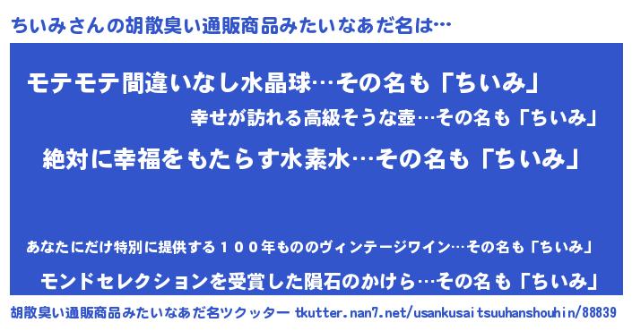 | ヘコむあだ名 | 『ちいみ(苦笑)』『ちいふぇ~』 |
