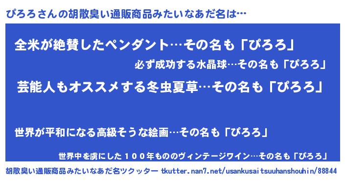 | 意味不明あだ名 | 『自称ぴろろ』『ヨモギ科ぴろろ属』 |