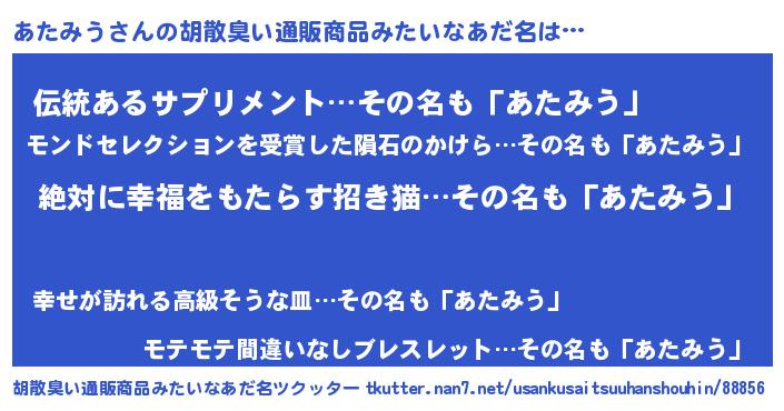 | 男性向けラノベタイトル風あだ名 | 『アタミウスレイヤー』『緋弾のアタミウ』 |