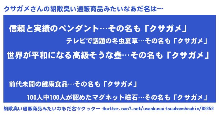 | 意味不明あだ名 | 『クサガメフォーエバー』『自称クサガメ』 |