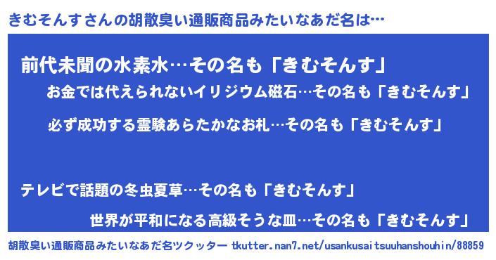 | ヘコむあだ名 | 『きむっふぃ~』『きむそんす(遠い目)』 |