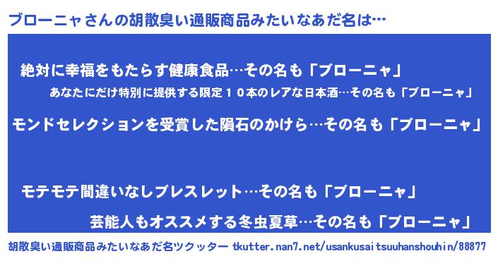 | ヘコむあだ名 | 『ブローニャ(遠い目)』『ブロふぇ~』 |