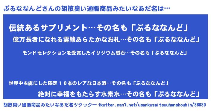 | 伝説のあだ名 | 『救世主となる占い師ぷるななんど』 |