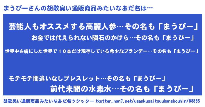 | ヘコむあだ名 | 『まうぴー(苦笑)』『まうにー』 |
