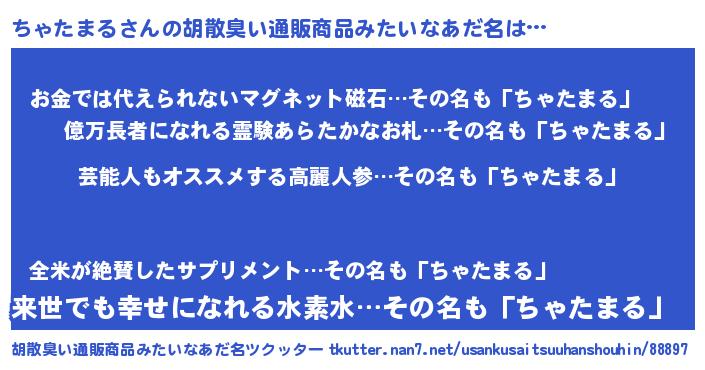 | ヘコむあだ名 | 『ちゃたまる(笑)』『ちゃにー』 |