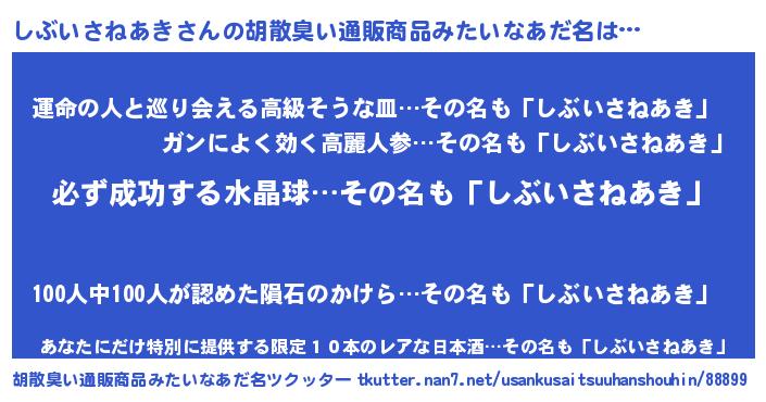 | ヒーロー風カッコイイあだ名 | 『スーパーシブイサネアキ』 |