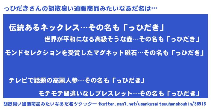 | ヘコむあだ名 | 『っひお』『っひにゅー』『なまこ酢』 |