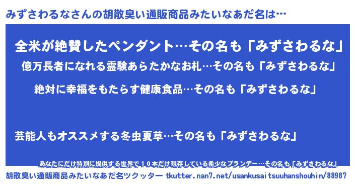 | ヘコむあだ名 | 『みずさわるな(笑)』『みずっぺ』 |