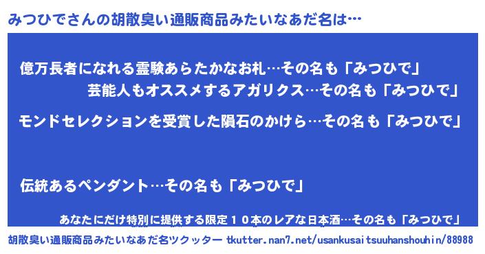 | ヘコむあだ名 | 『みつもー』『みつっちょ』 |