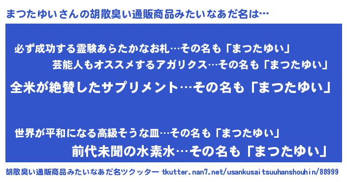 | ヘコむあだ名 | 『まつ太郎』『まつっふぃ~』 |