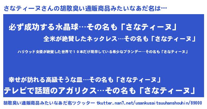 | ヘコむあだ名 | 『さなもー』『さなっ子』『つくし』 |