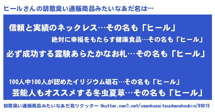 | 恥ずかしいあだ名 | 『プリティーヒール』『ヒーリンリン』 |