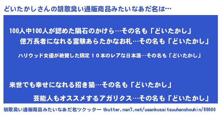 | 意味不明あだ名 | 『住所不定無職どいたかし(50歳)』 |