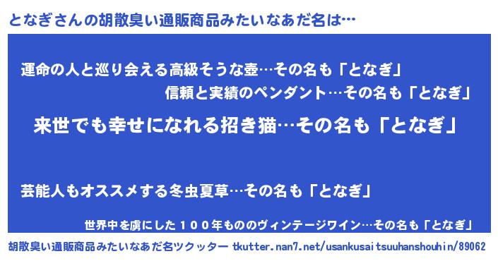 | ヘコむあだ名 | 『となぎ(笑)』『なまこ酢』 |