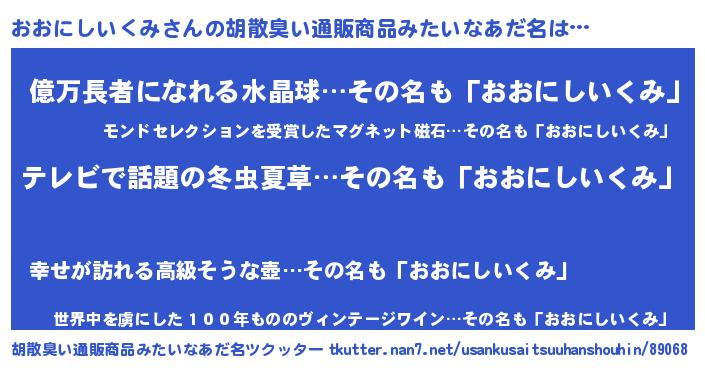 | 意味不明あだ名 | 『自称おおにしいくみ』 |
