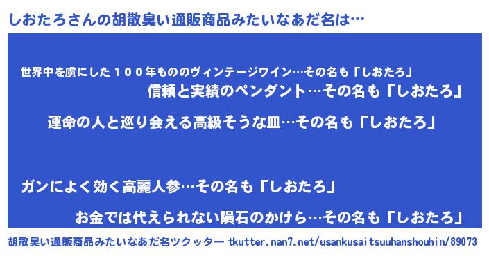 | 男性向けラノベタイトル風あだ名 | 『しおたろに滅ぼされるだけの簡単なお仕事です』 |
