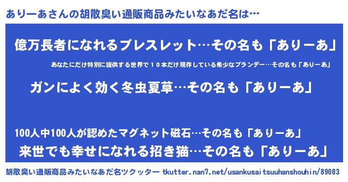 | ヘコむあだ名 | 『ありっふぃ~』『ありーあ(小並感)』 |