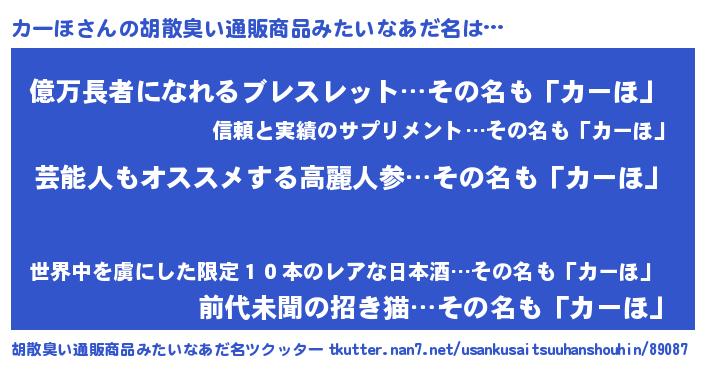 カーほさんの胡散臭い通販商品みたいなあだ名をツクッター!