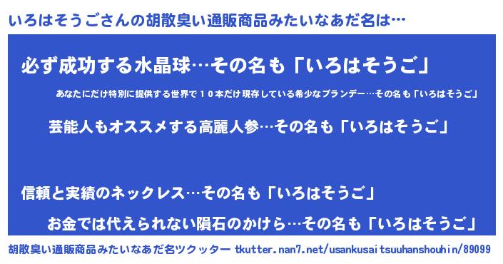 | 意味不明あだ名 | 『自称いろはそうご』 |
