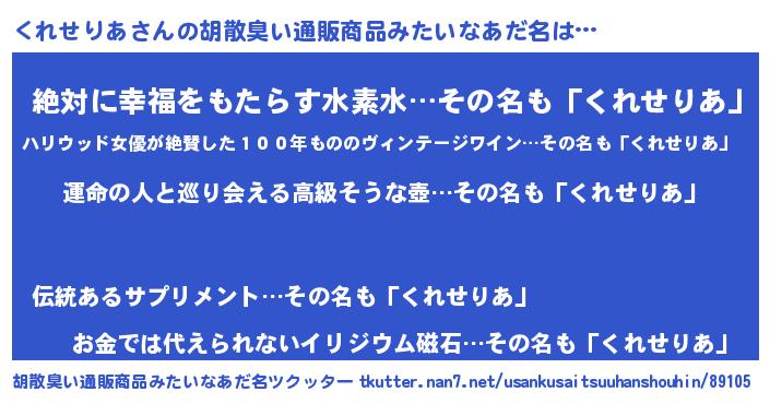 | 欧米人風あだ名 | 『くれせりあクリステル』 |