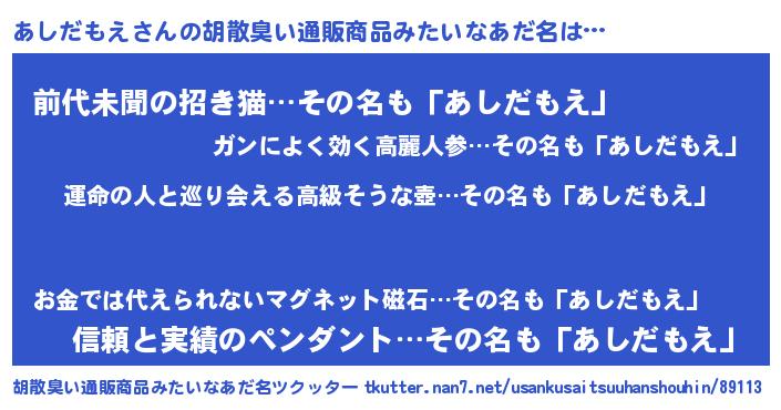 | ヘコむあだ名 | 『酢こんぶ』『あしだもえ(遠い目)』 |